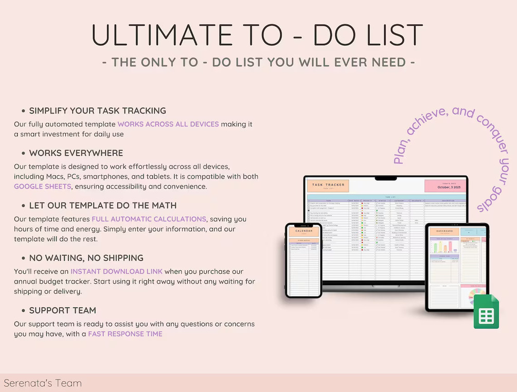 π Unleash your productivity potential with the Ultimate Task Tracker! Whether you're a professional, student, or busy parent, this template is designed to help you take control of your tasks, streamline your schedule, and make every day a success. Say goodbye to overwhelming to-do lists and hello to a more organized, productive you! Get started now! π